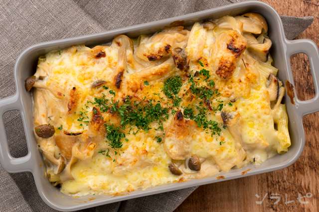 寒い日にぴったり鶏肉とキノコのグラタンのレシピ ソラレピ